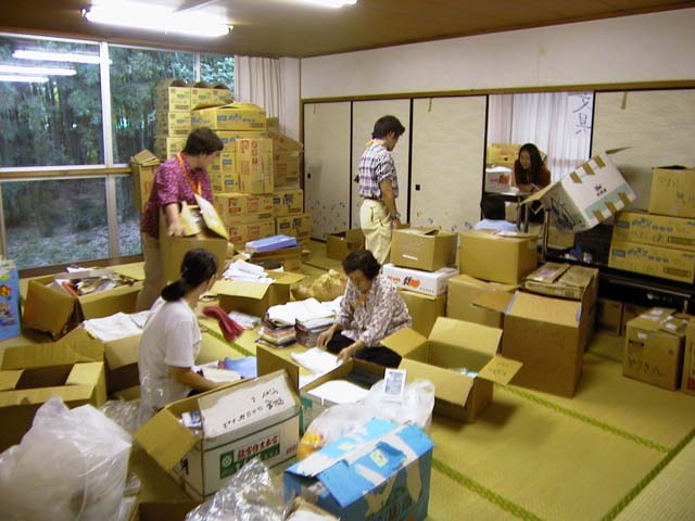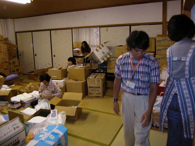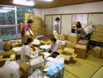 ボランティアの方々の荷物の区分け