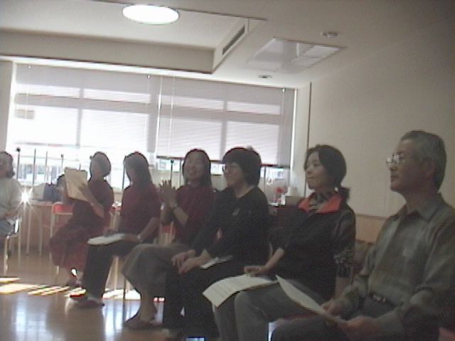 | 独唱とコーラスの練習もあり、 | 3つのパートのハーモニーあり、 | 緊張感のある練習でした。 | でも、練習がおわるとリラックスしたもの。 |